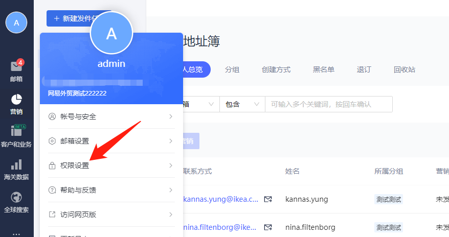 3.权限管理:想要给这些成员配置什么权限,点击勾选就行。没有勾选的,成员是没这个权限的。后期想要更改权限也可以直接在权限管理操作。