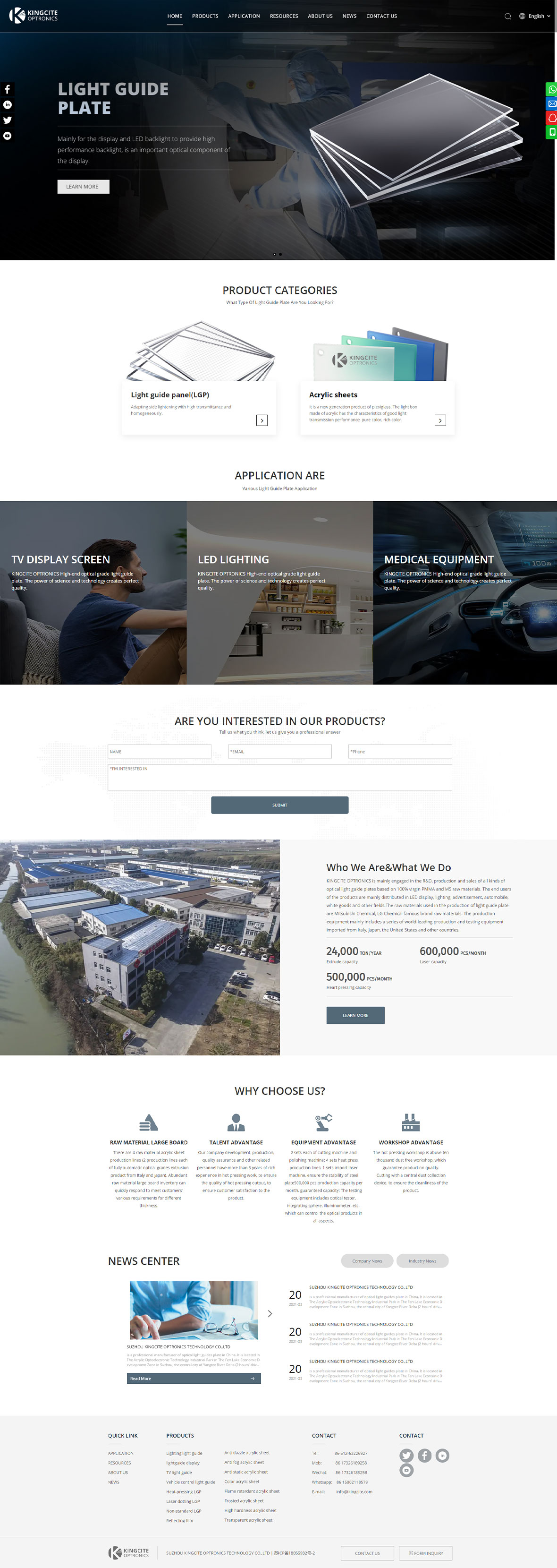 这家公司主要从事以100%纯PMMA和MS为原材料的各类导光板的研发、生产和销售。产品终端用户主要分布在LED显示屏、照明、广告、汽车、白色家电等领域。